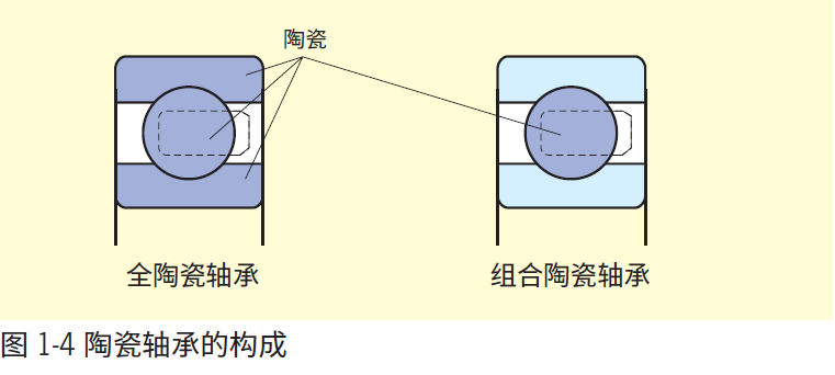 四、陶瓷轴承的构成 陶瓷轴承的基本构成大致可分为全陶瓷轴承(外圈、内圈、滚动体全部都是陶瓷)和组合陶瓷轴承(滚动体为陶瓷)。 如果是组合陶瓷轴承,外圈和内圈使用含有高碳铬轴承钢的特殊钢。 保持架的材料根据轴承的使用条件不同,会使用金属材料、树脂材料或复合材料。